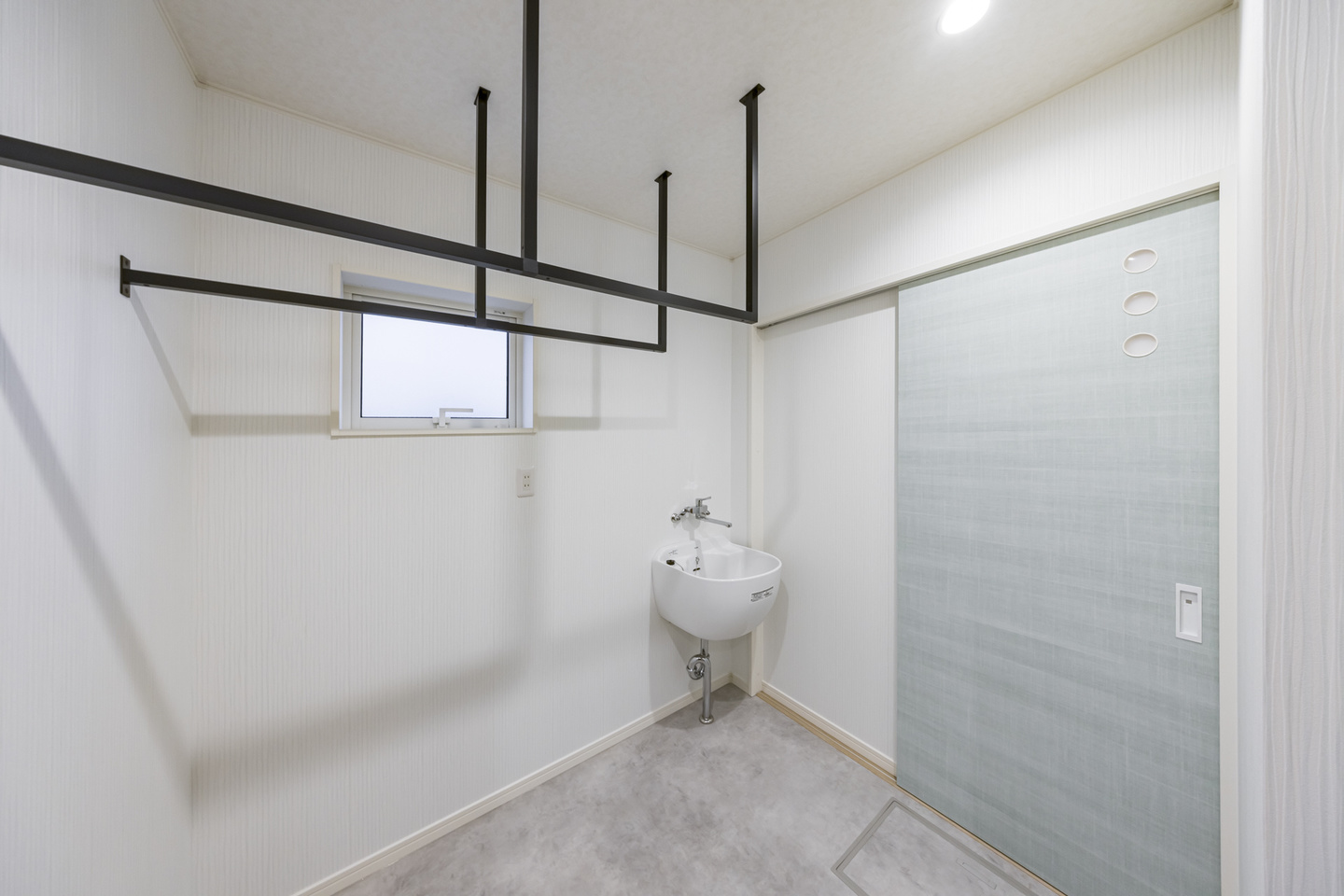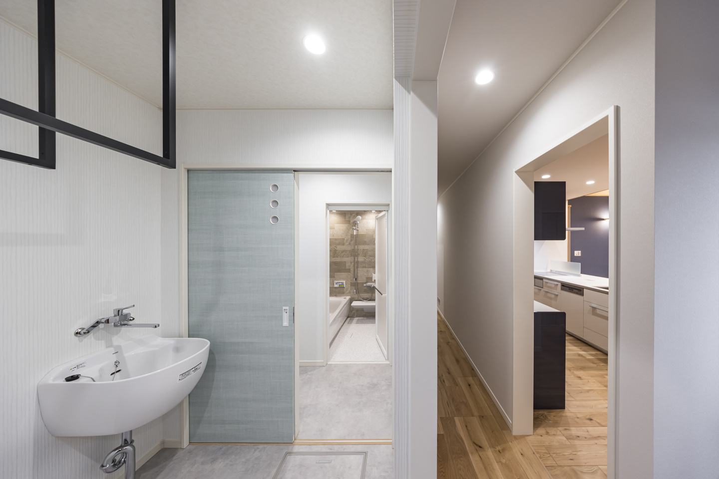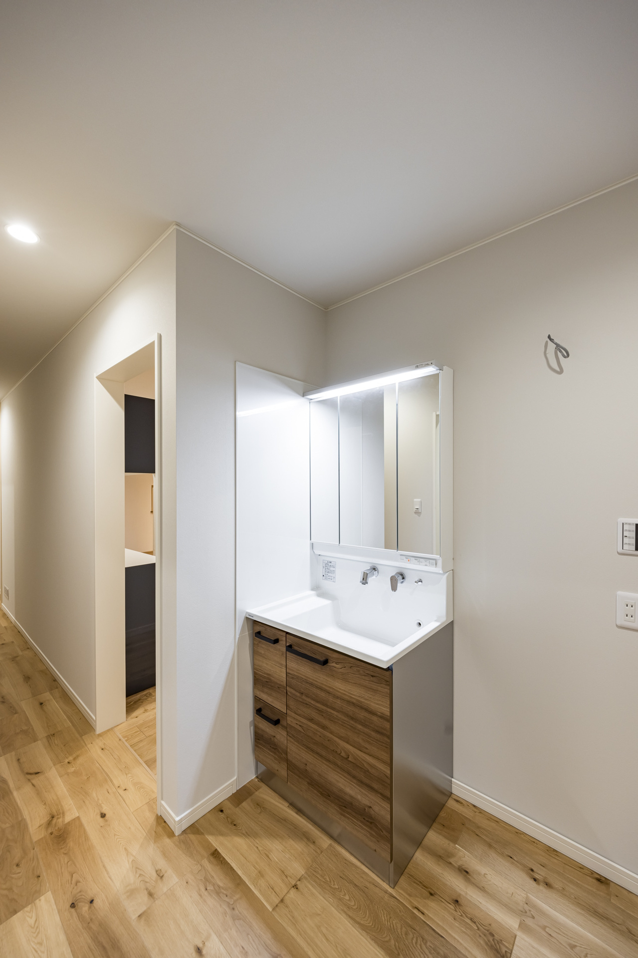 脱衣所、洗面廻りは白を基調で清潔感をだしています。