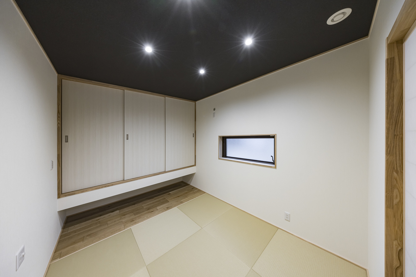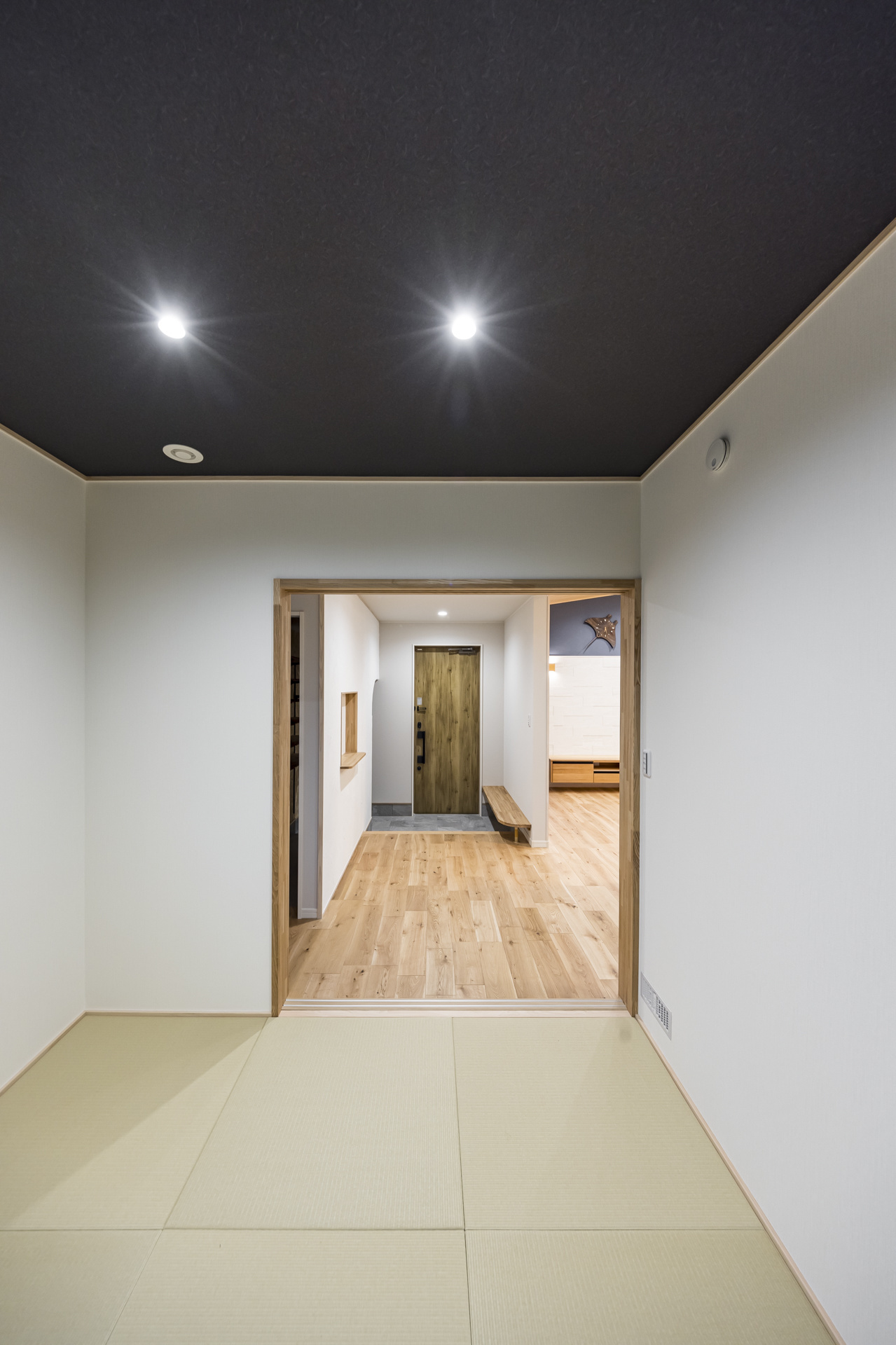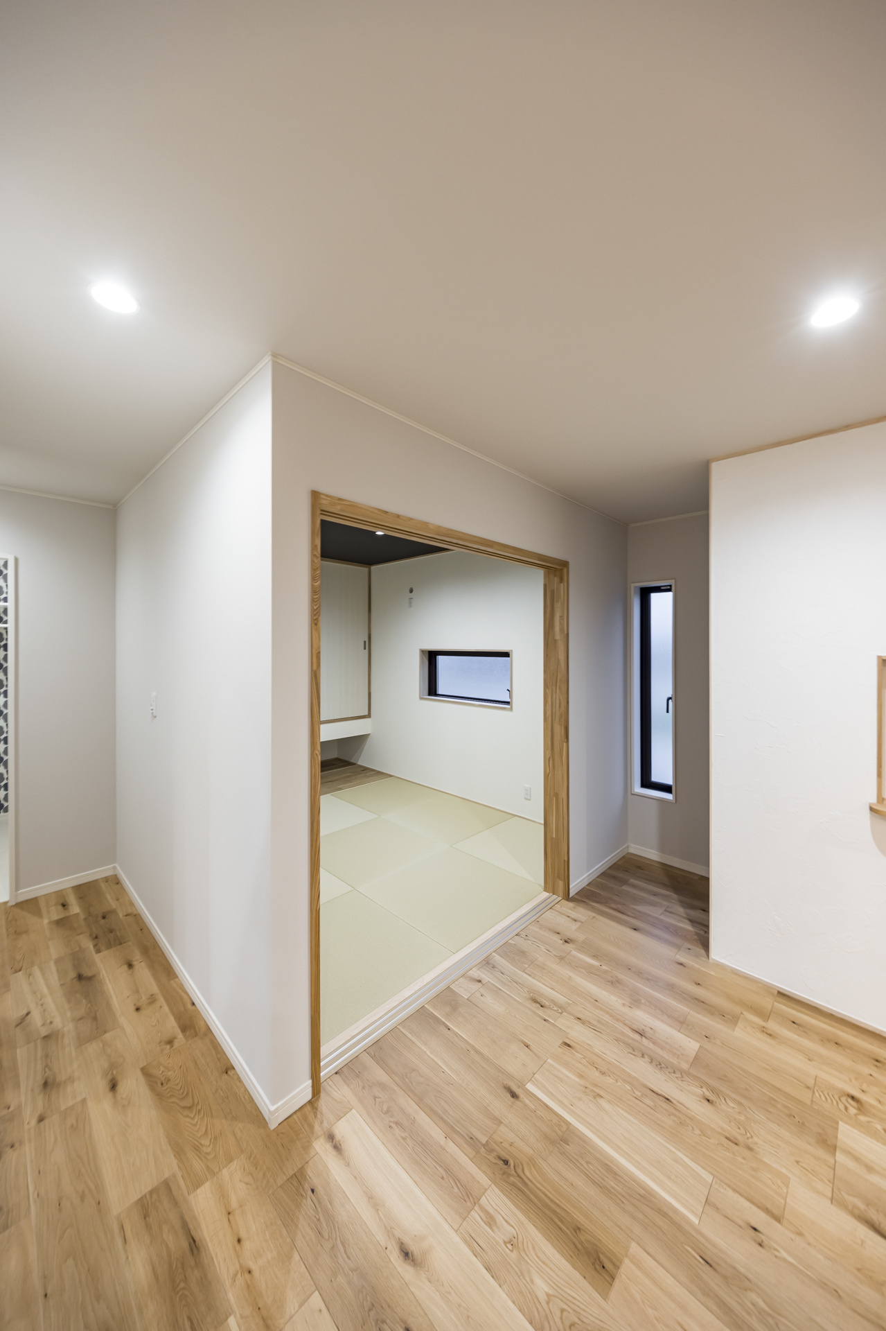 落ち着きある和紙畳の和室もあり、玄関右側に大収納のシューズクロークがあり収納面も充実しています。