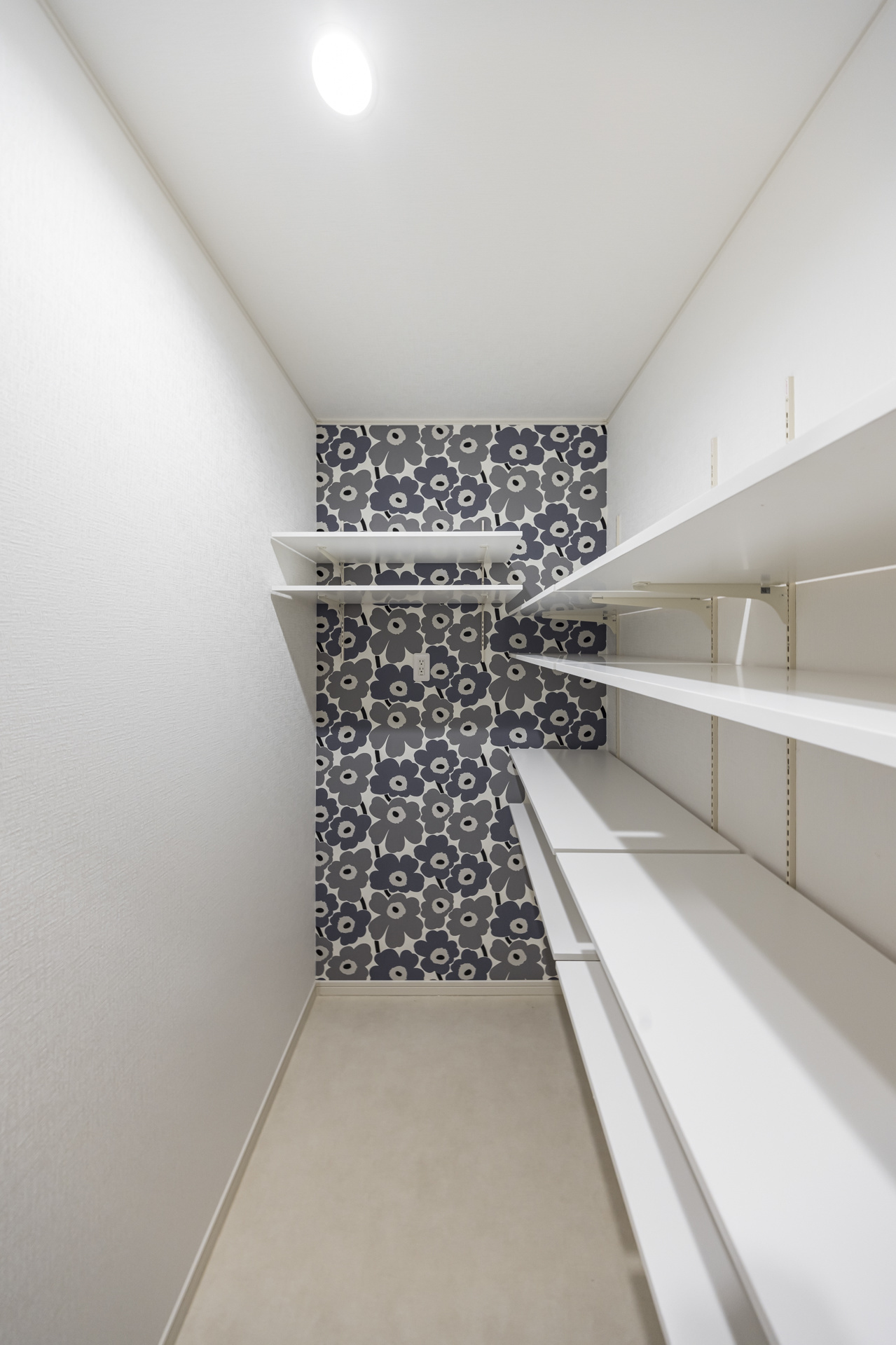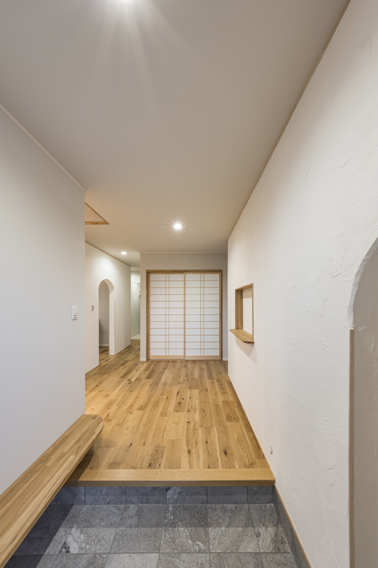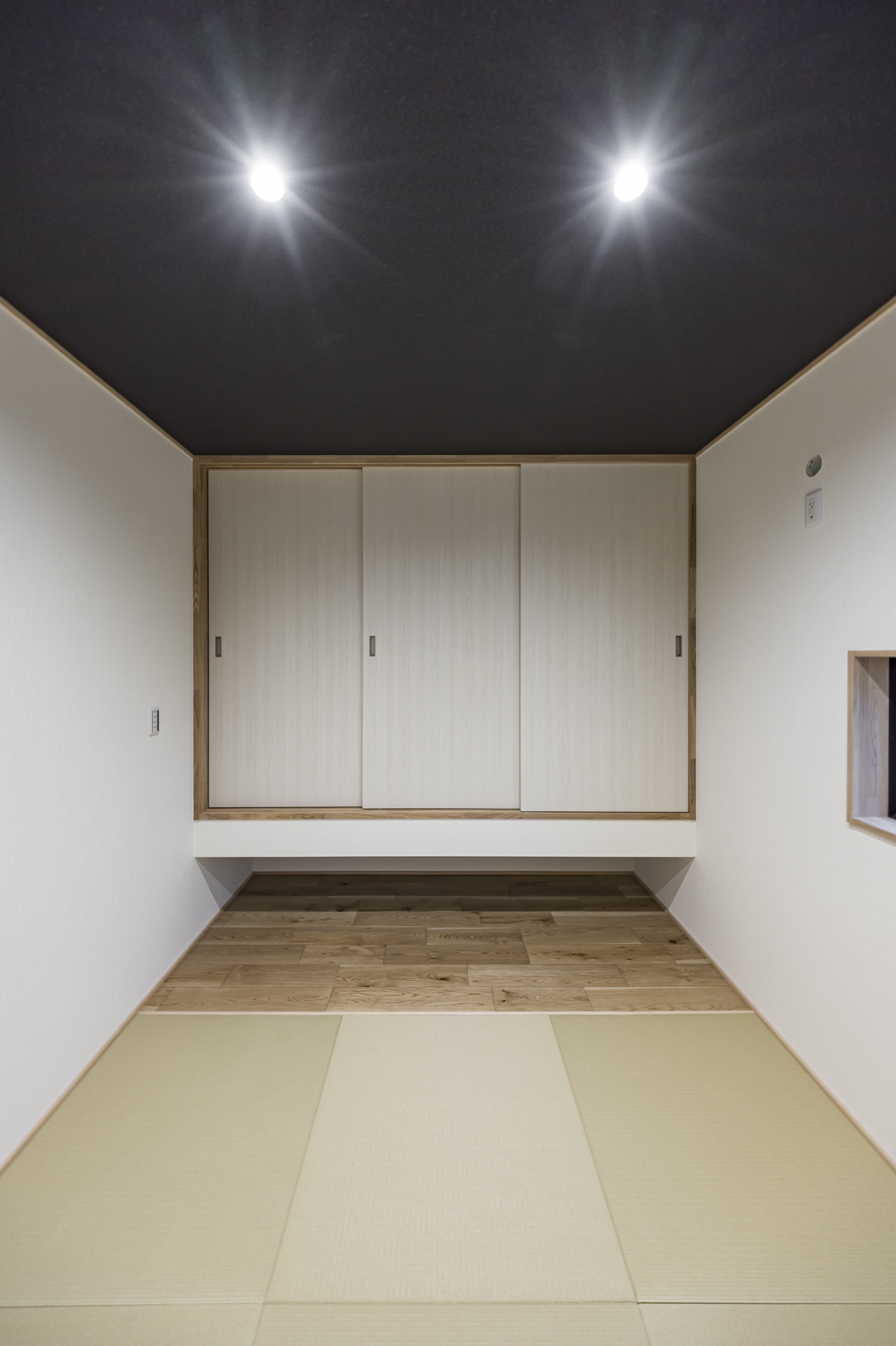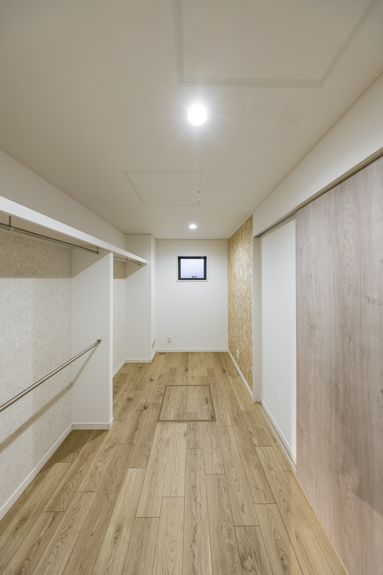 落ち着きある和紙畳の和室もあり、玄関右側に大収納のシューズクロークがあり収納面も充実しています。